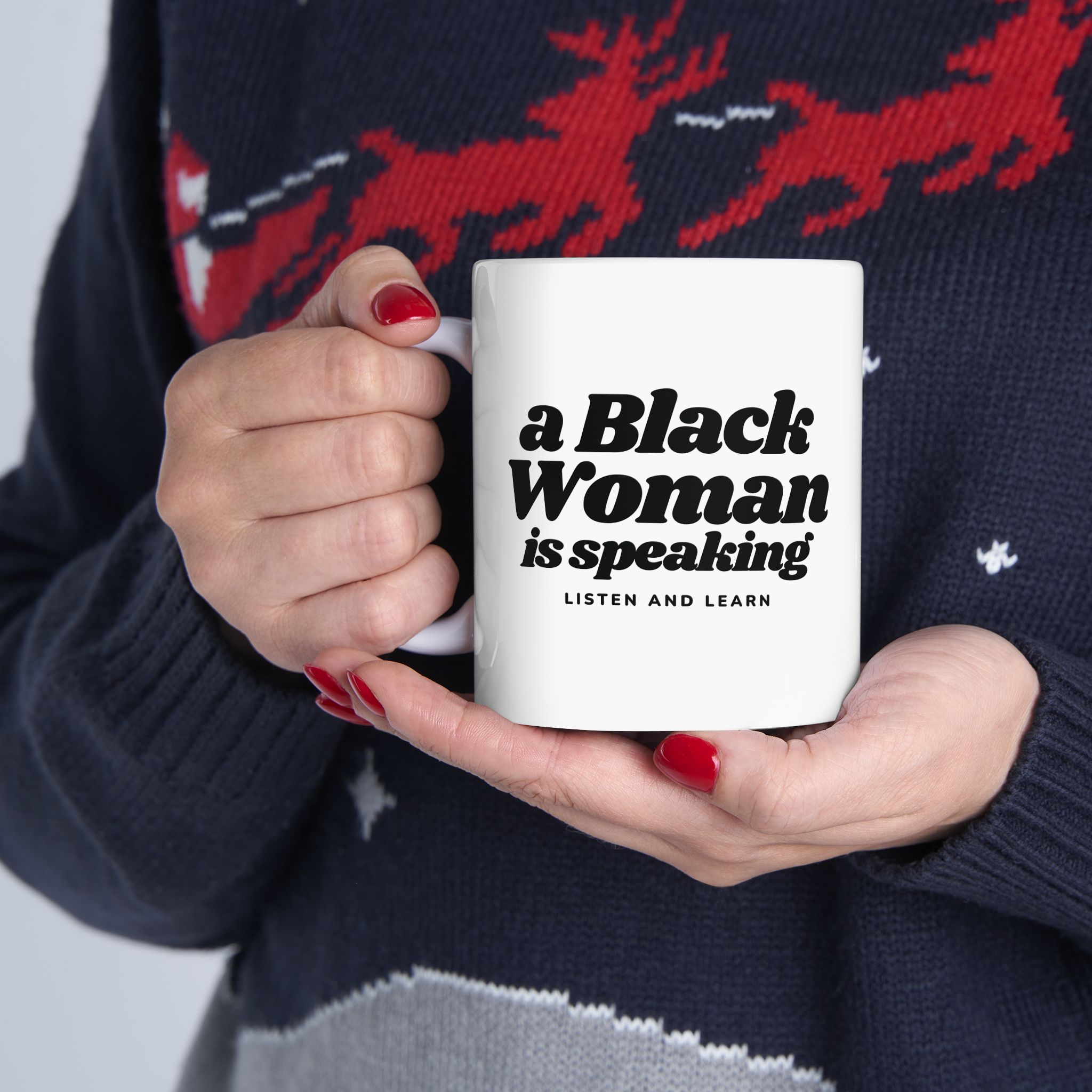 This mug is a tribute to the voice that has survived being talked over in meetings and credited last despite being the hardest worker. It lets everyone in the room know that a Black Womxn is speaking, and she has not had enough damn coffee to repeat herself. It holds more than coffee: it holds “I said what I said.”
