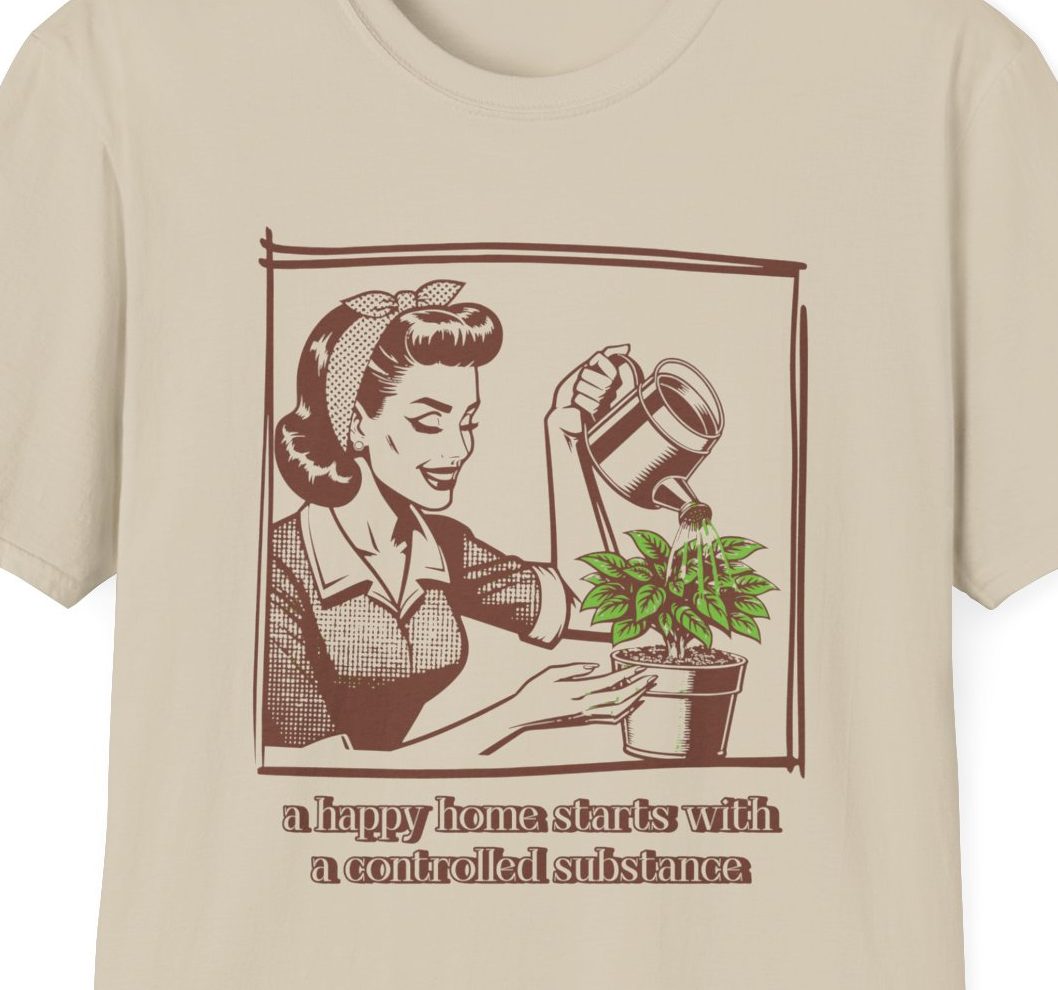 A vintage, homey print that feels like a wink from your favorite mid-century cookbook. This tee sits relaxed at the shoulders and drapes cleanly, easy to move in while tending houseplants or brewing a slow cup of coffee. It’s an understated retro vibe that pairs with worn jeans or a cozy cardigan. Built to last and comfortable year-round, it’s the kind of shirt you reach for when you want something familiar and quietly playful in your day.